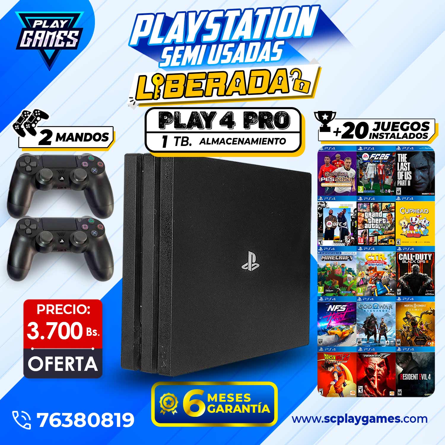 Semi Usada PlayStation 4 PRO 1 TB – LIBERADA (OFERTA)